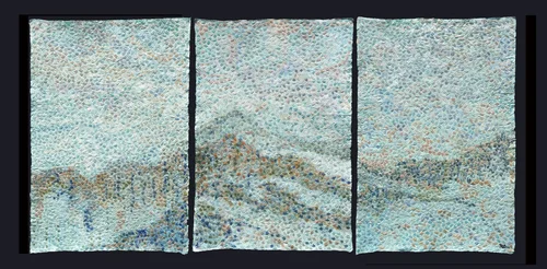 Kyoseishi paper, acrylic paint, DMC thread